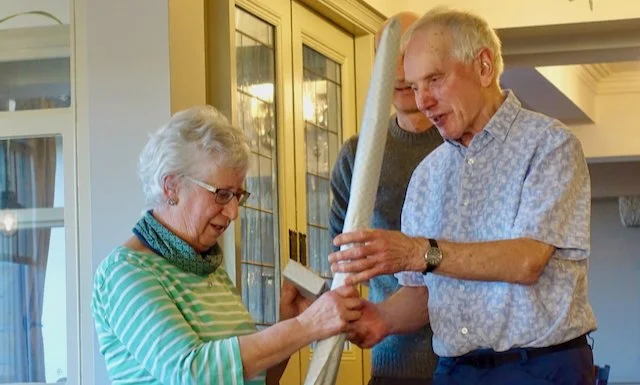 Anne Hutchinson receiving a gift from ray moss (a previous president) thanking her for her service to the club